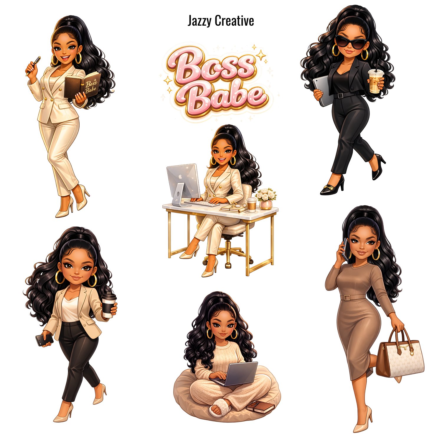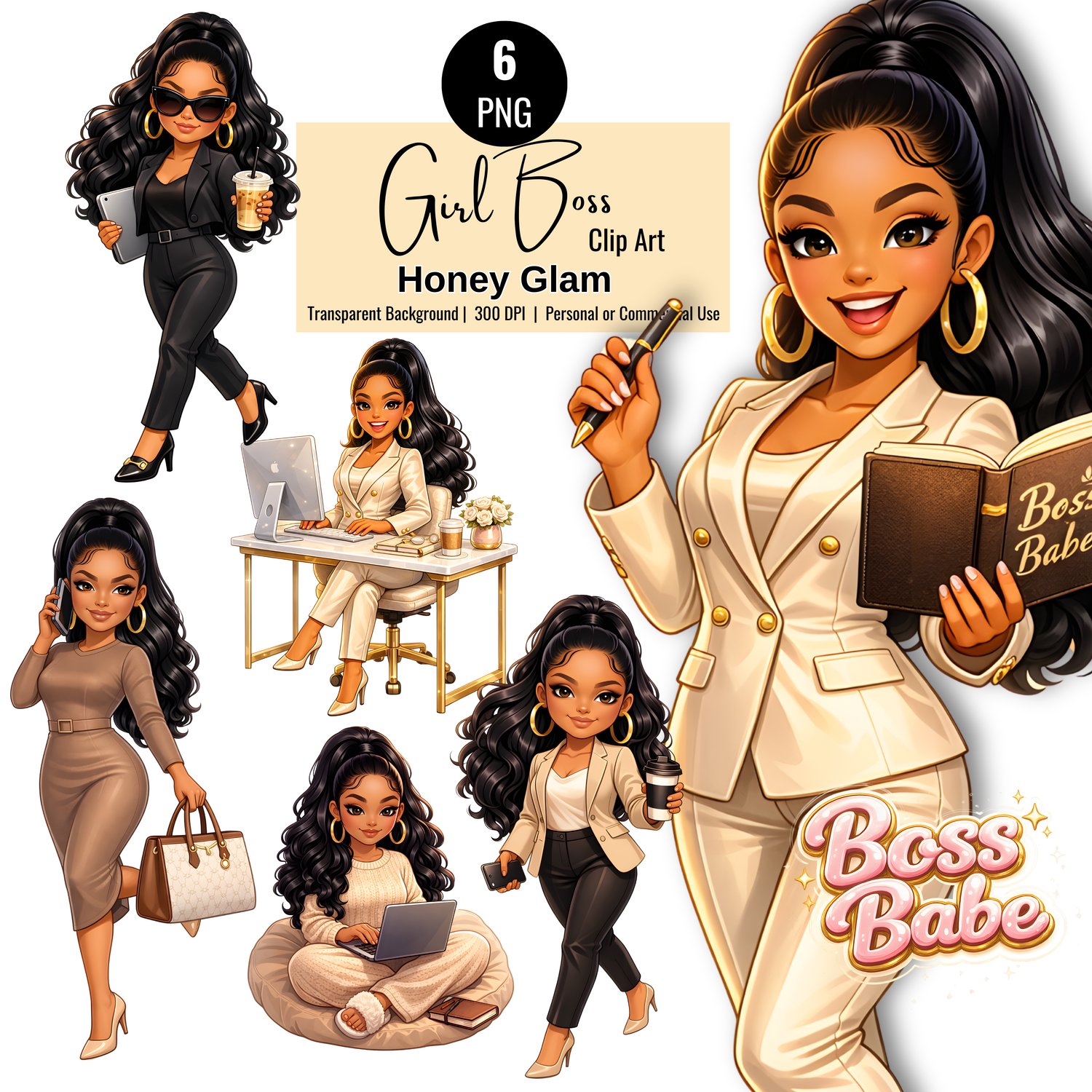 6 Girl Boss Clip Art, Honey Glam v1