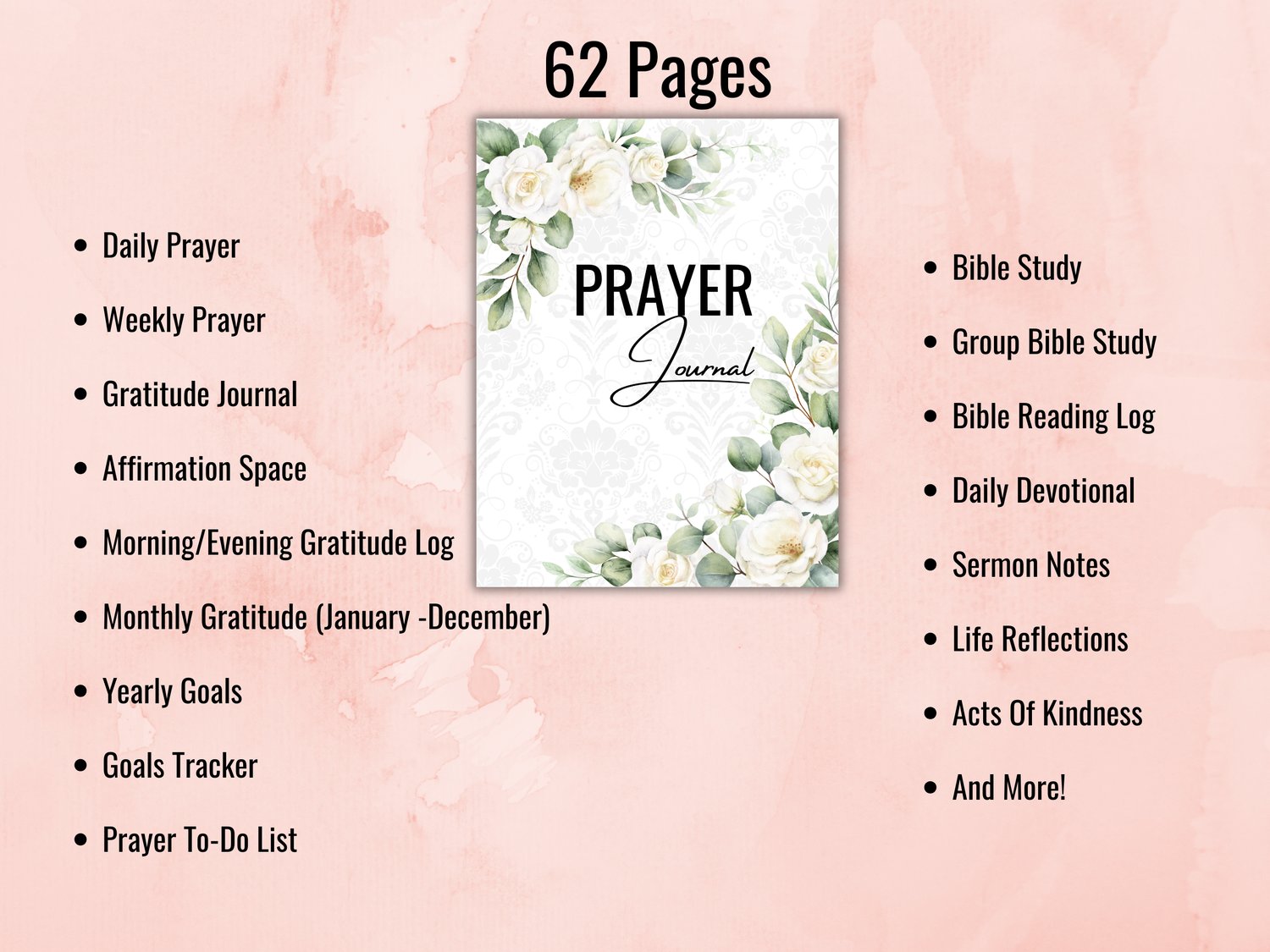 Prayer Journal 62 Pages, Gratitude Journal, Daily & Monthly Planner, Printable Journal Pages, Size 8.5x11, PLR MRR